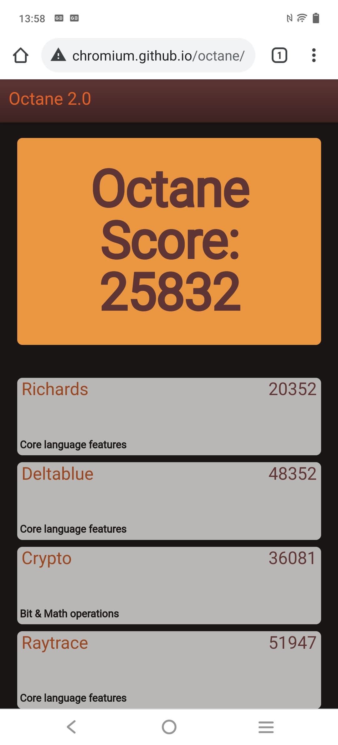 | Google Octane 2 (больше — лучше) | 25832 | 25560 | 19876 | 26144 | 21754 |