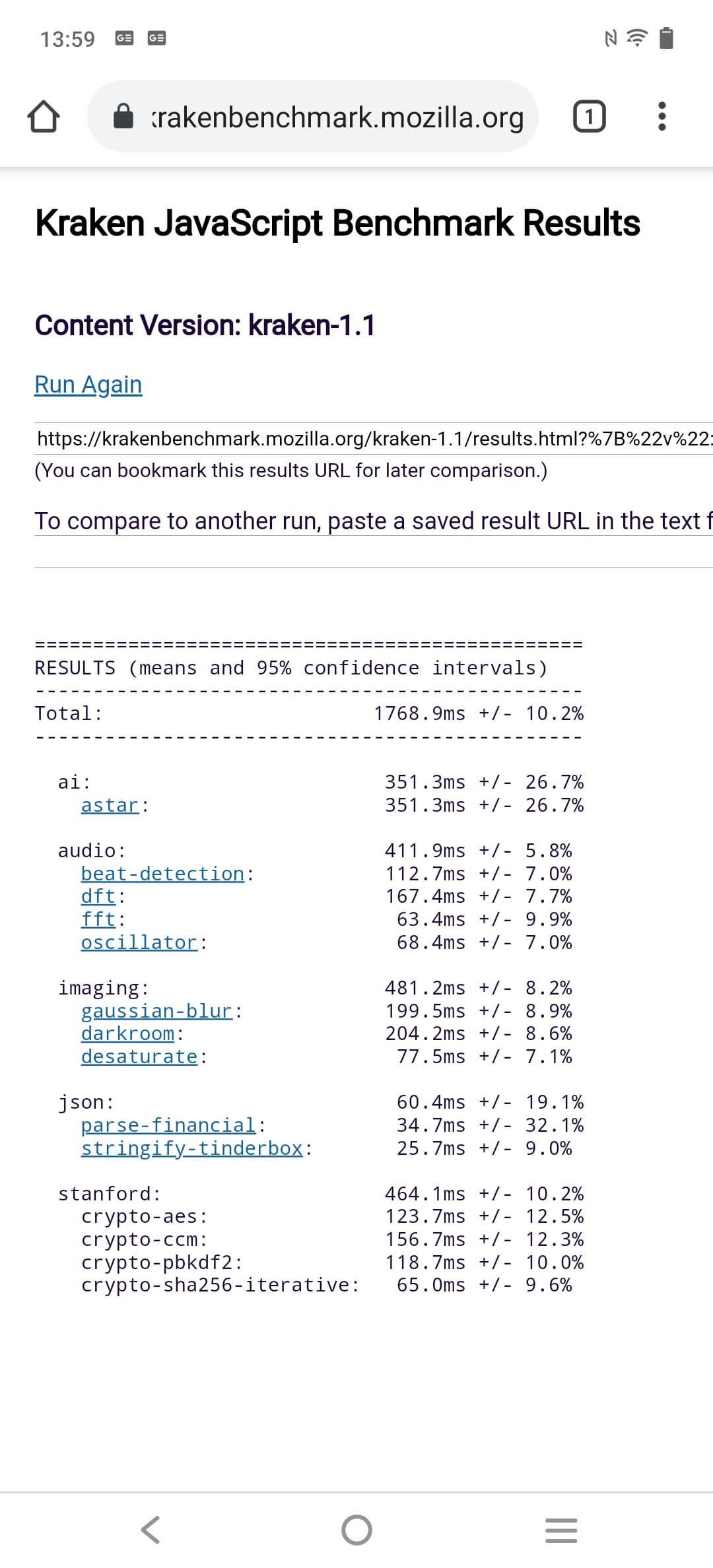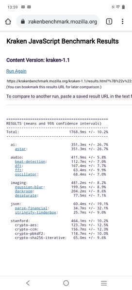 | Mozilla Kraken (мс, меньше — лучше) | 1769 | 2070 | 2197 | 1729 | 2222 |