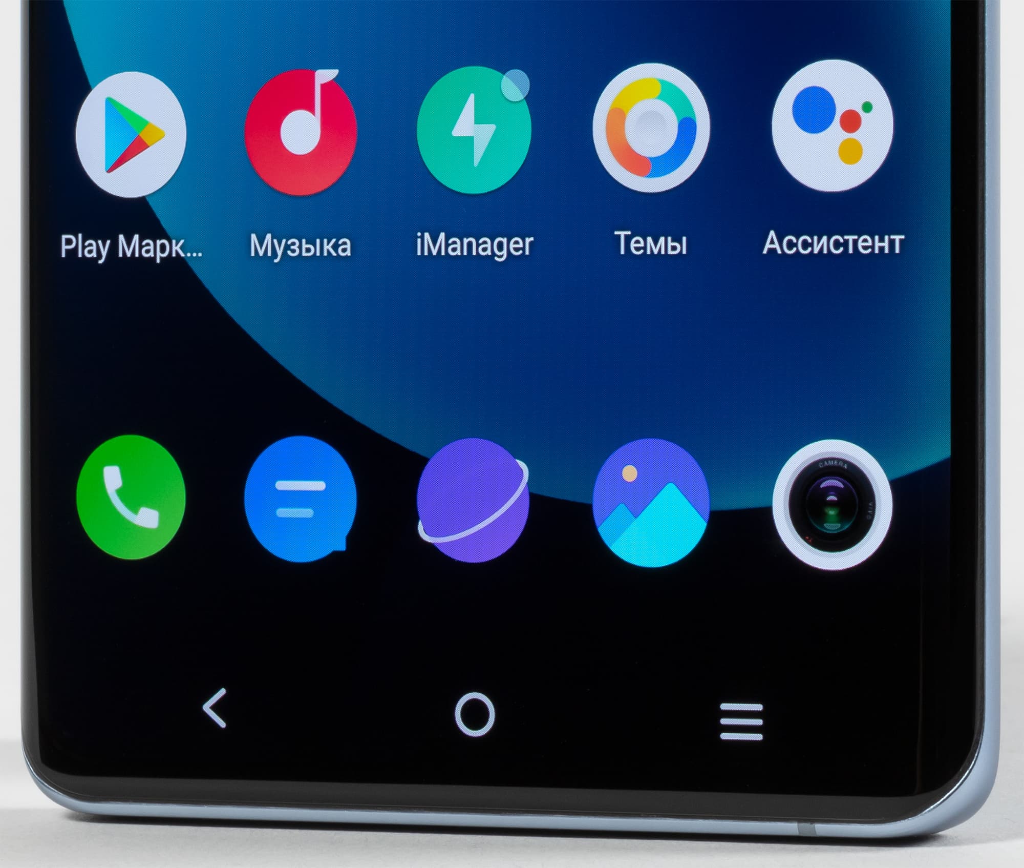 Фронтальную камеру установили за маленьким вырезом прямо в матрице экрана. Непонятно, правда, зачем ее размещают прямо посередине, а не в углу. Ведь в углу эта дырка в экране не так бросается в глаза, как по центру. В темной теме она, конечно, не так видна, но все же...