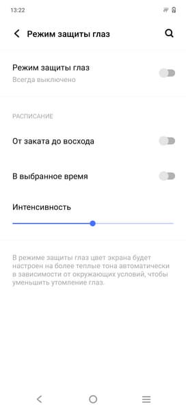 Разумеется, присутствует модная настройка (Режим защиты глаз), позволяющая снизить интенсивность синей компоненты: