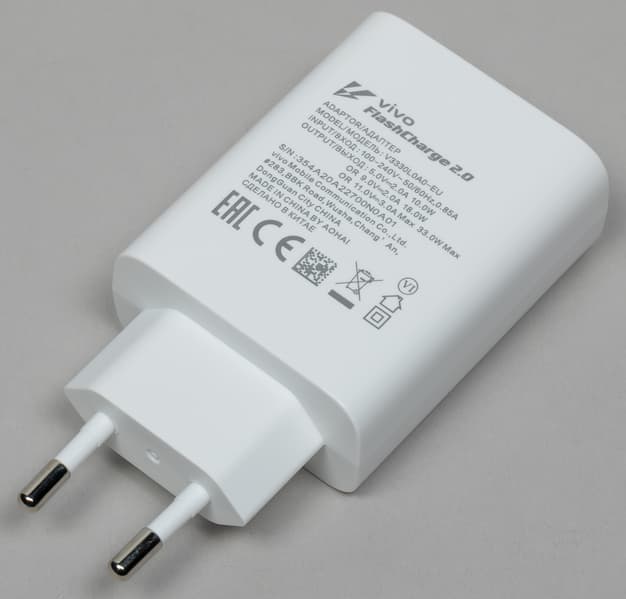 Пока еще не все производители лишили свои смартфоны комплектных зарядных устройств: здесь в коробку со смартфоном вошло зарядное устройство с быстрой зарядкой на 33 Вт.
