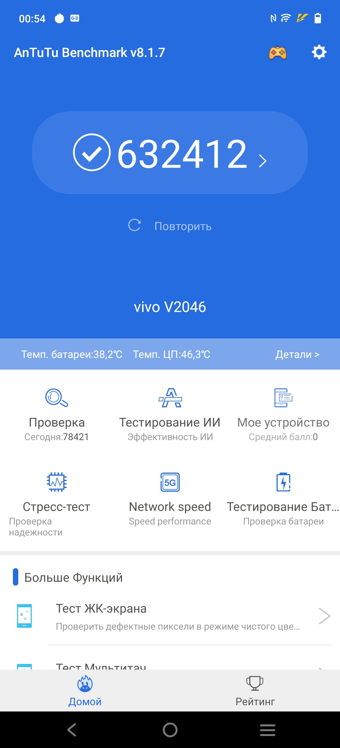 | AnTuTu 8.x (больше — лучше) | 632412 | 634255 | 518549 | 637132 | 484588 |