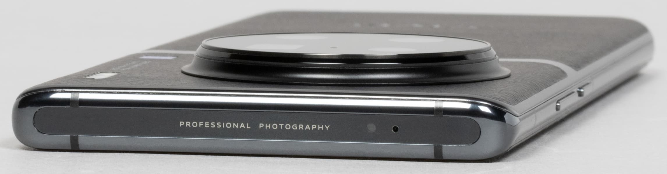 На верхнем торце в металл рамки врезана плоская отшлифованная панель с вызывающей надписью «Профессиональная фотография». Здесь же на торце установлен дополнительный микрофон.