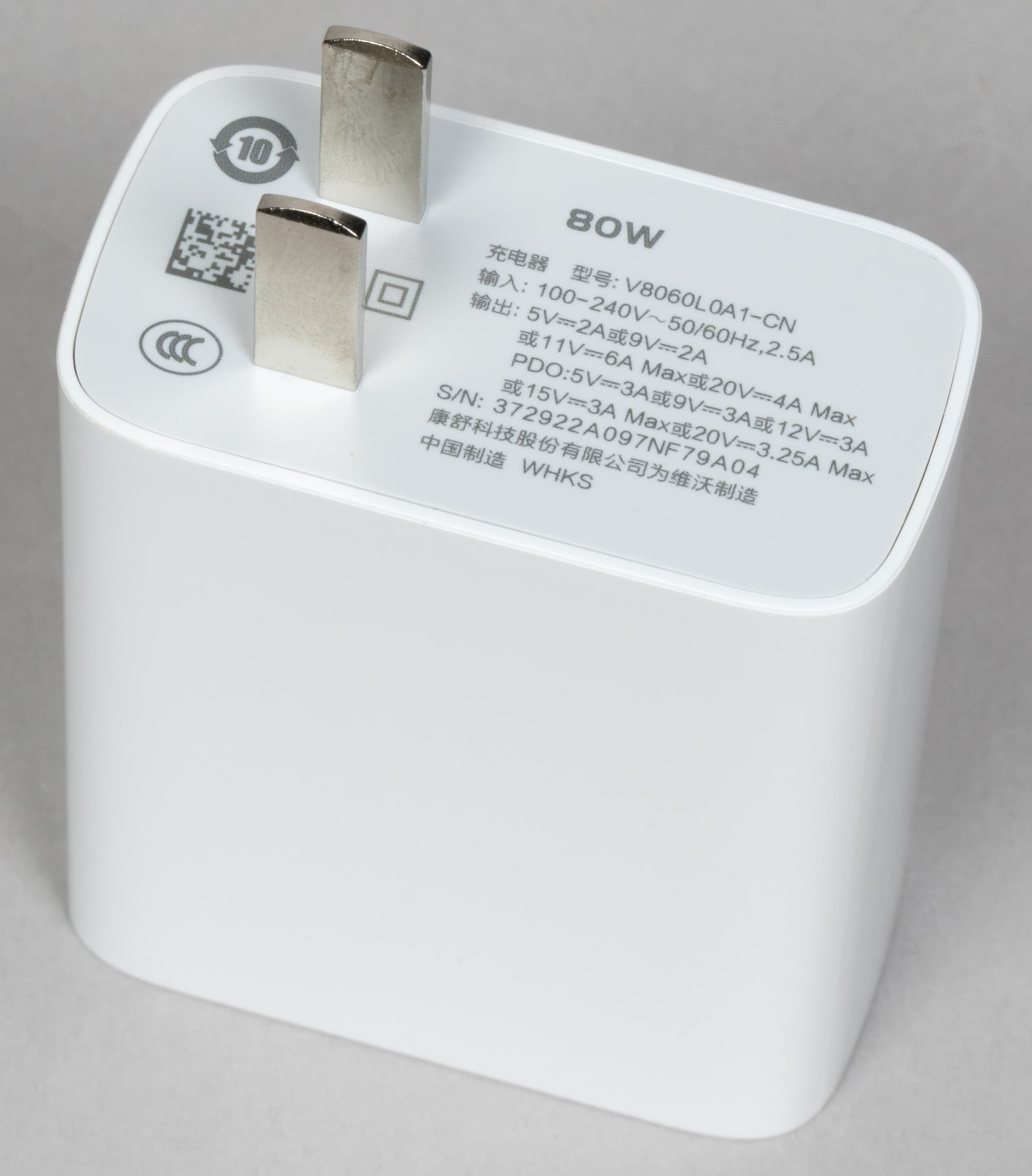 В комплекте есть защитный чехол и зарядное устройство с максимальной выходной мощностью 80 Вт.