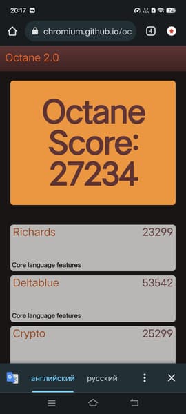 | Google Octane 2 (больше — лучше) | 27234 | 53298 | 59248 | 30430 | 54735 |