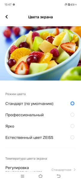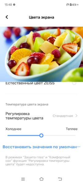 Дополнительно можно регулировать оттенок (холоднее—теплее), но не в случае профиля Естественный цвет Zeiss.