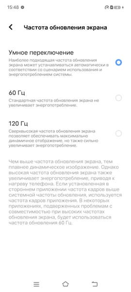 В настройках экрана можно включить режим с повышенной до 120 Гц частотой обновления: