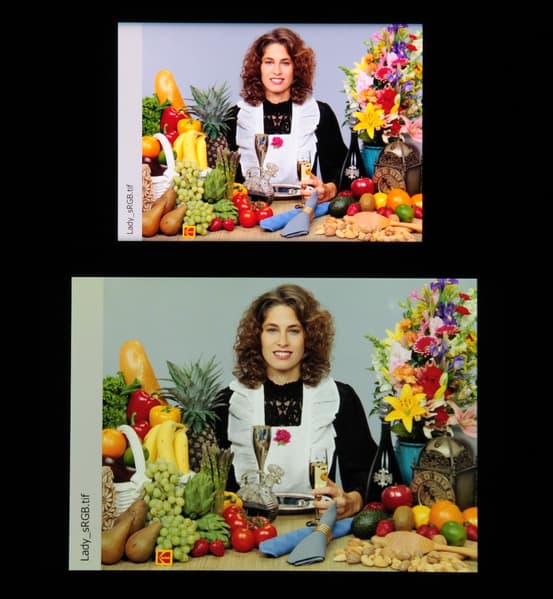 Этот профиль характеризуются хорошим приближением к охвату DCI (см. ниже). При выборе профиля Ярко насыщенность цветов еще выше: