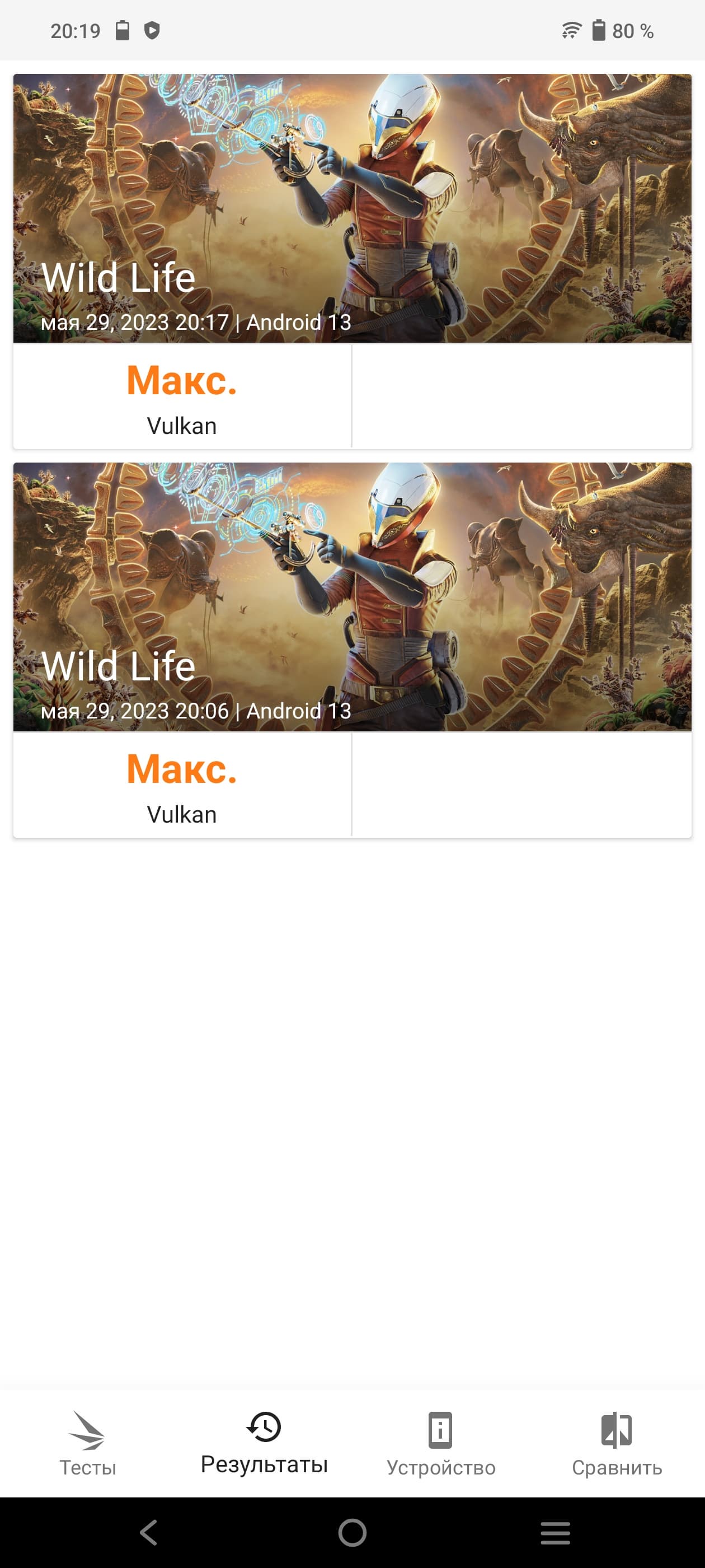 | 3DMark Wild Life Vulkan (больше — лучше) | max | max | max | max | max |