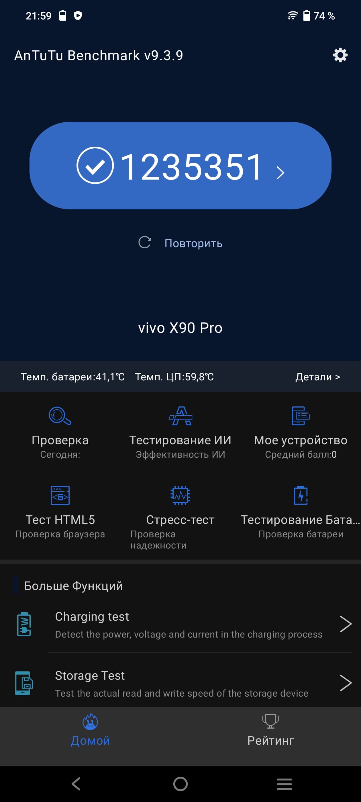 | AnTuTu (v9.x) (больше — лучше) | 1235351 | 1293076 | 1180538 | 1024226 | 815296 |