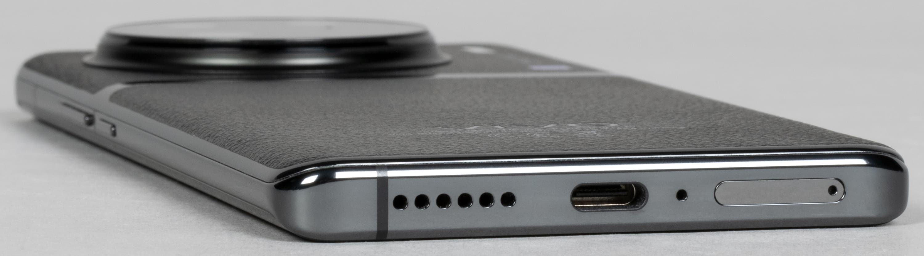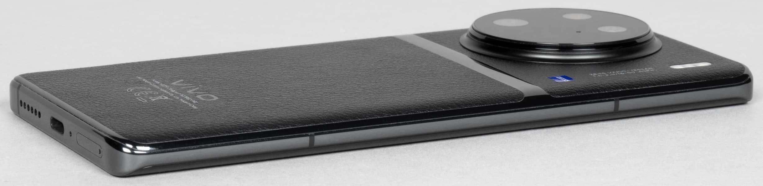 Vivo X90 Pro получил очень солидный дизайн, в котором, как в старомодном аксессуаре XIX века, сочетаются хромированный метал и кожаная отделка. Кожа, естественно, не настоящая, это экокожа. Тем не менее, смотрится смартфон сногсшибательно — как настоящий премиальный продукт.