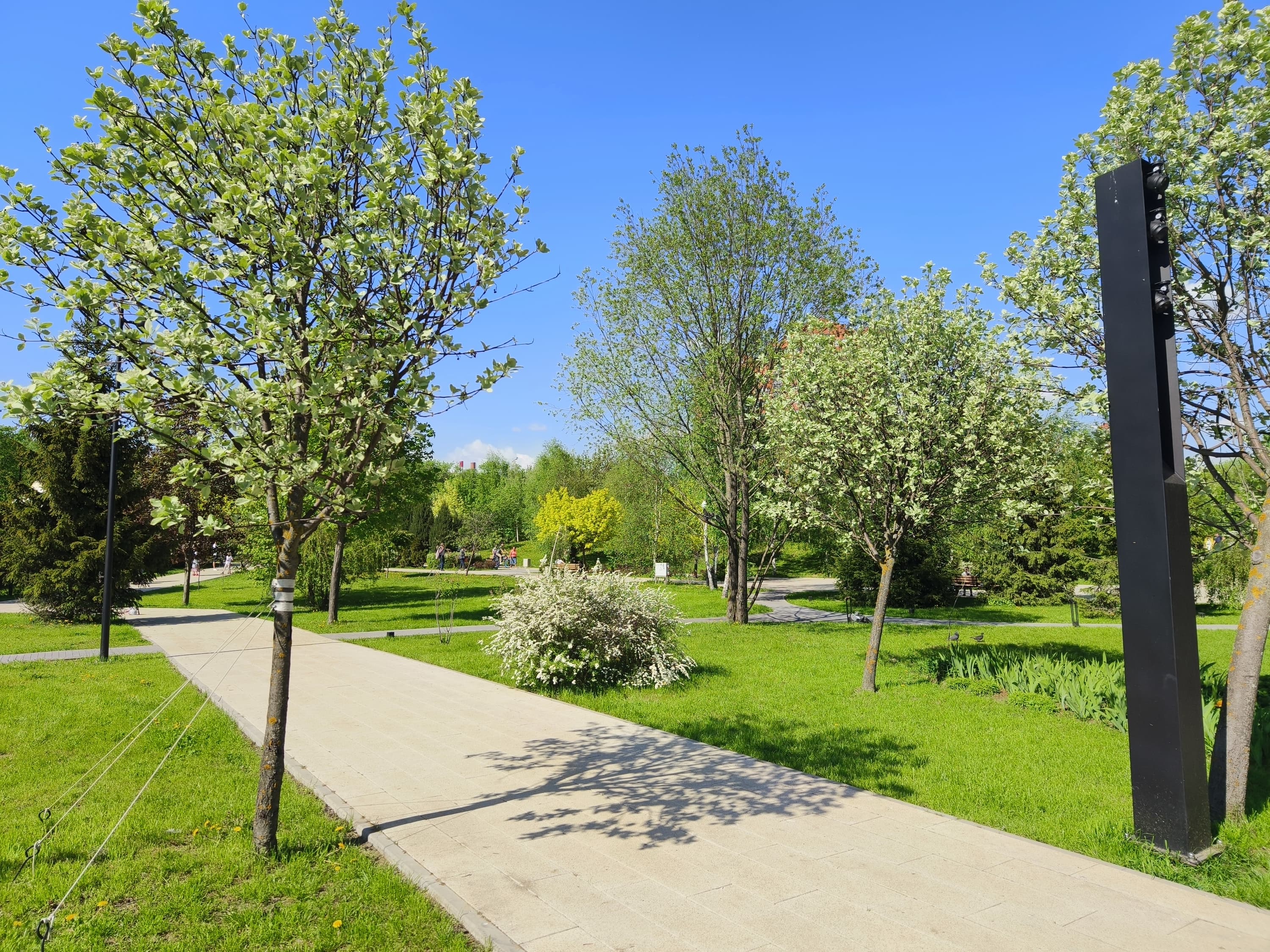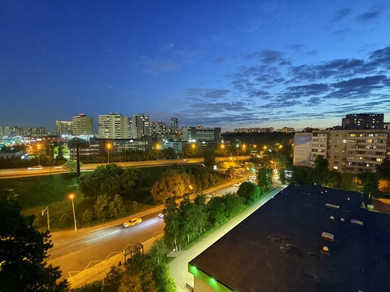 Камера с широкоугольным объективом (108°) и не очень высоким разрешением сенсора (12 Мп) единственная не получила оптический стаб, но тоже получила автофокус. У фотографий равномерная резкость по всему полю кадра, смазов по краям мало, поскольку угол обзора ограничен. Снимки и близко не такие детализированные, но по цветопередаче совпадают с основной камерой. Качество для широкоугольной съемки на смартфон приемлемое, но не флагманское.