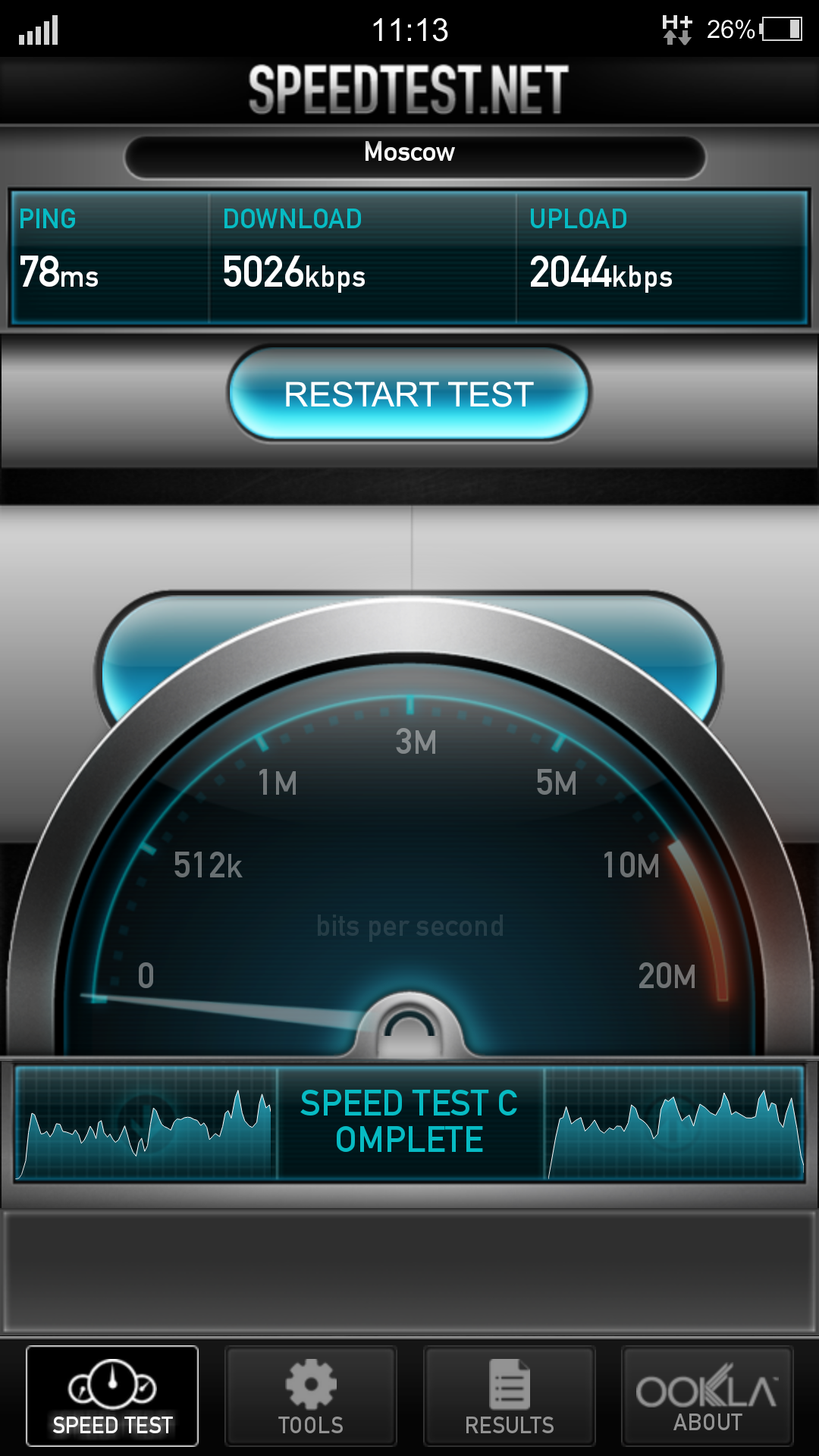 При работе в городских условиях смартфон предпочитал сети третьего поколения. Очное сравнение с Sony Xperia Z, который основан на схожей платформе, показало, что распределение по типам сетей у vivo Xplay отличается мало. В то же время, уровень сигнала у него был меньше, что было заметно и по скорости приема и передачи данных. Максимальные цифры, которые удалось получить, составляют около 5 Мбит/с, тогда как решение от Sony в тех же условиях показывало более 8 Мбит/с.