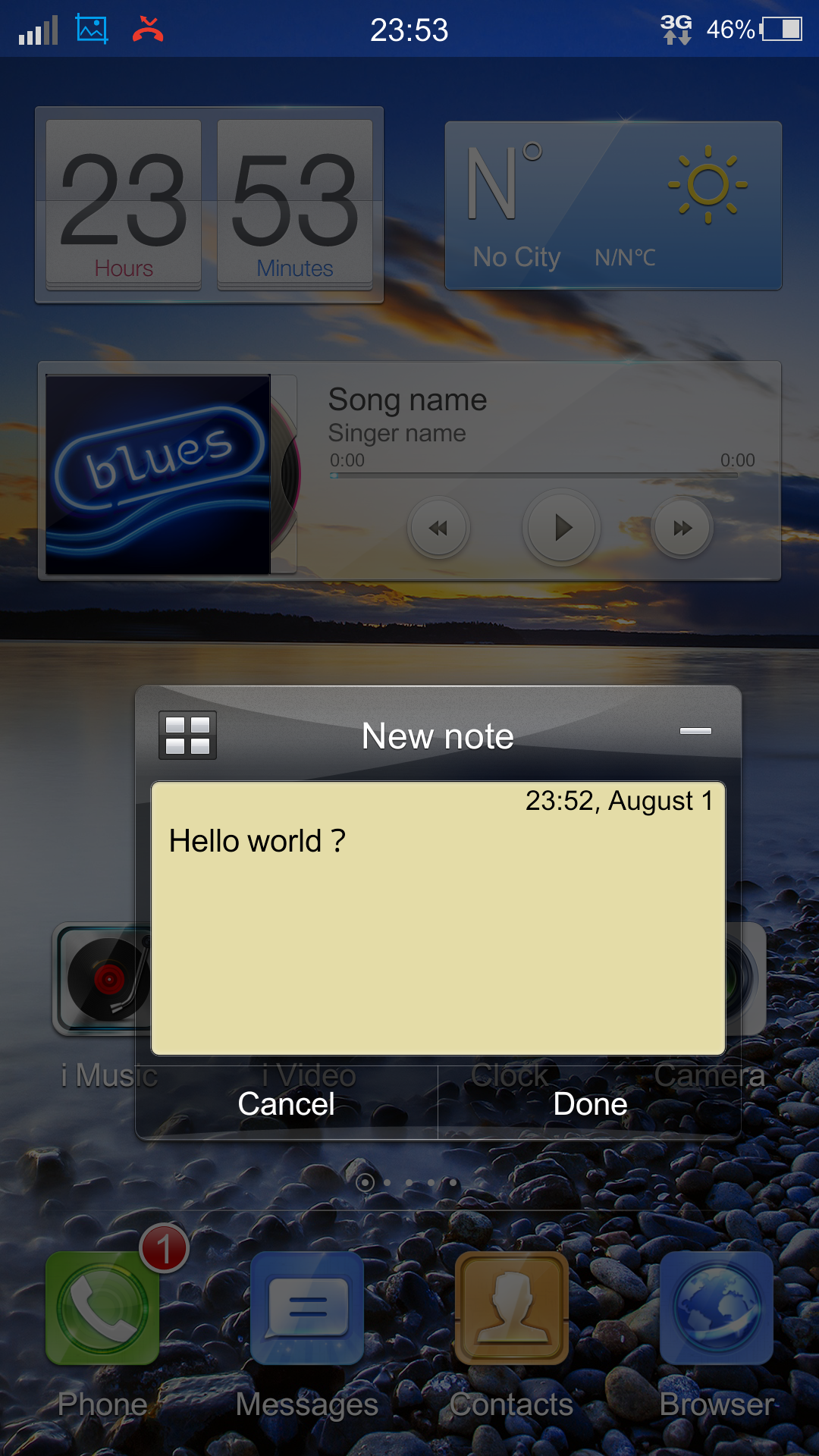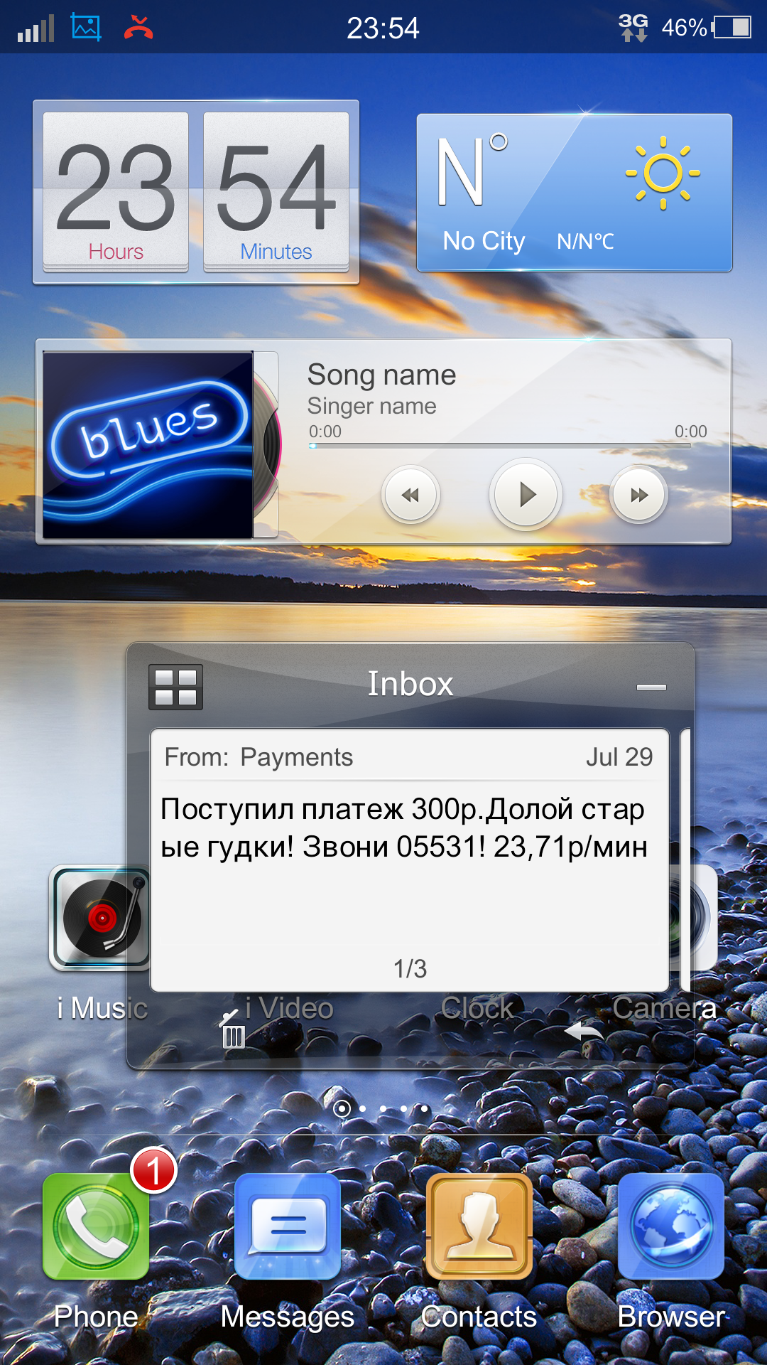 Упомянем еще наличие собственных версий аудио и видео плееров, утилиты смены темы оформления, программ создания голосовых и рукописных заметок, фонарика, файлового менеджера, утилиты оптимизации системы (включая управление энергопотреблением), клиента собственного облачного сервиса компании для хранения контактов, SMS и файлов. Фирменных виджетов немного, интересен может быть пожалуй только модуль для быстрого вызова контактов. А погода, как часто бывает, работает только для Китая.