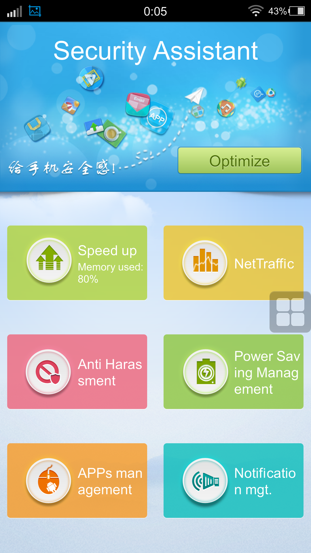 К сожалению, про штатные программы ничего интересного сказать нельзя, поскольку большинство из них на китайском языке и рассчитано именно на этот рынок. Однако одна все-таки может пригодиться. Речь идет о Security Assistant.