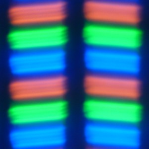 В данном смартфоне используется матрица типа IPS. Микрофотографии чуть-чуть размыты (видимо, из-за особенностей слоев перед матрицей), но типичную для IPS структуру субпикселей угадать можно: