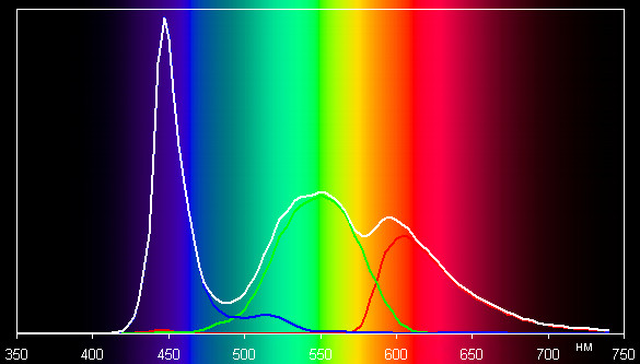 Спектры показывают, что светофильтры матрицы в умеренной степени подмешивают компоненты друг к другу: