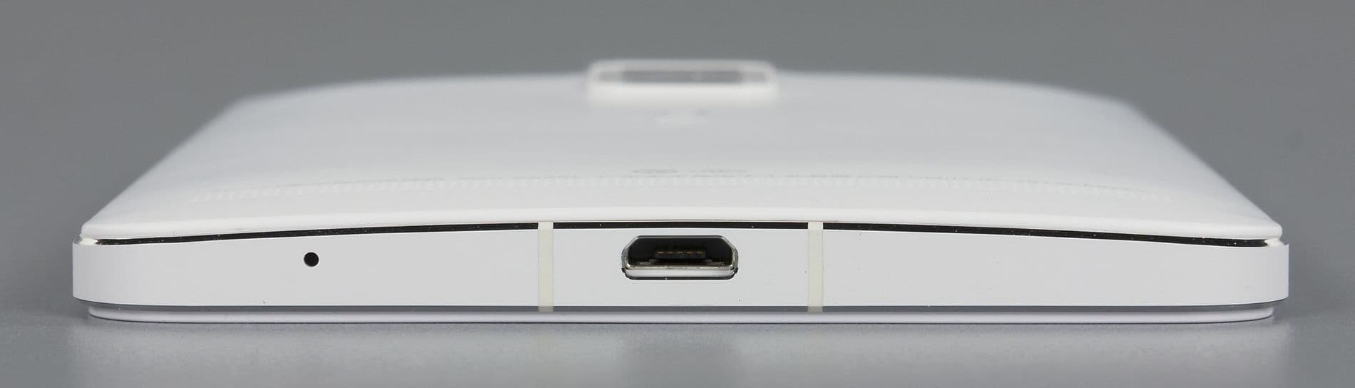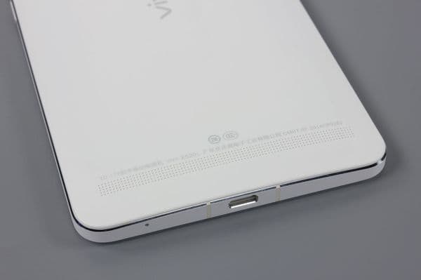 Аудиоразъем для наушников (3,5 мм) здесь находится сверху, а универсальный разъем Micro-USB, поддерживающий режим OTG — снизу. Никакими заглушками разъемы и выходы смартфона не прикрыты, так как аппарат не обеспечен защитой от воды и грязи. Крепления для ремешка на корпусе Vivo Xplay 3S также не найти. Смартфон, по всей видимости, поставляется на рынок лишь в одном цвете, белом, о других пока ничего не известно.