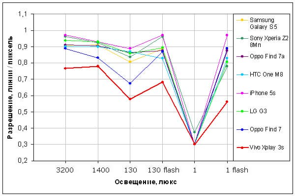 Камера злоупотребляет шарпингом и, местами, шумодавом, хотя шумов, как таковых, мы все же не видим. Таким образом, до звания флагманской камере остается еще несколько шагов. По сравнению с нынешними флагманами ее снимкам не хватает резкости (равномерной хотя бы по всему полю кадра), а также на снимках слишком много заметной и даже грубой программной обработки. Съемка стенда отражает практически все недочеты камеры, ставя ее значительно ниже нынешних флагманов.