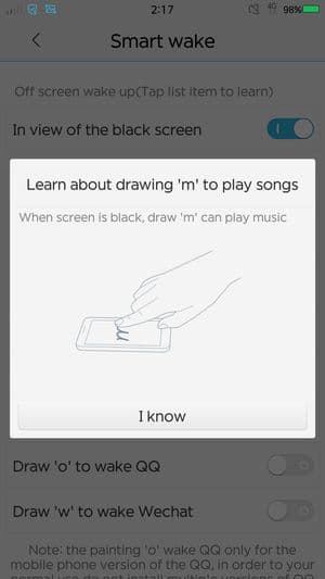 Оболочка Funtouch OS насыщена всевозможными улучшениями и дополнительными функциями. Очень много внимания уделено, в частности, управлению жестами: можно, к примеру, запускать программы не только прочертив определенные знаки на дисплее, но даже выполняя некие пассы с помощью самого смартфона прямо в воздухе. Так, например, чтобы запустить музыкальный проигрыватель, можно начертать литеру «М» на экране смартфона, а можно и провести самим смартфоном в воздухе, рисуя такой же знак.