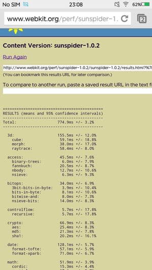 Что касается бенчмарков для оценки скорости движка javascript, то стоит всегда делать скидку на то, что в них результаты существенно зависят от браузера, в котором запускаются, так что сравнение может быть истинно корректным только на одинаковых ОС и браузерах, а такая возможность имеется при тестировании не всегда. В случае с ОС Android мы всегда стараемся использовать Google Chrome.