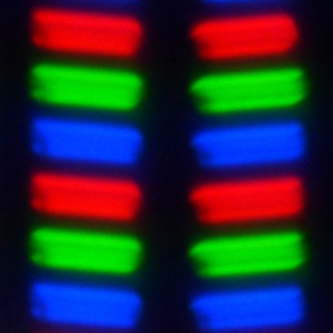 В данном смартфоне используется матрица типа IPS. Микрофотографии (если приглядеться) демонстрируют типичную для IPS структуру субпикселей: