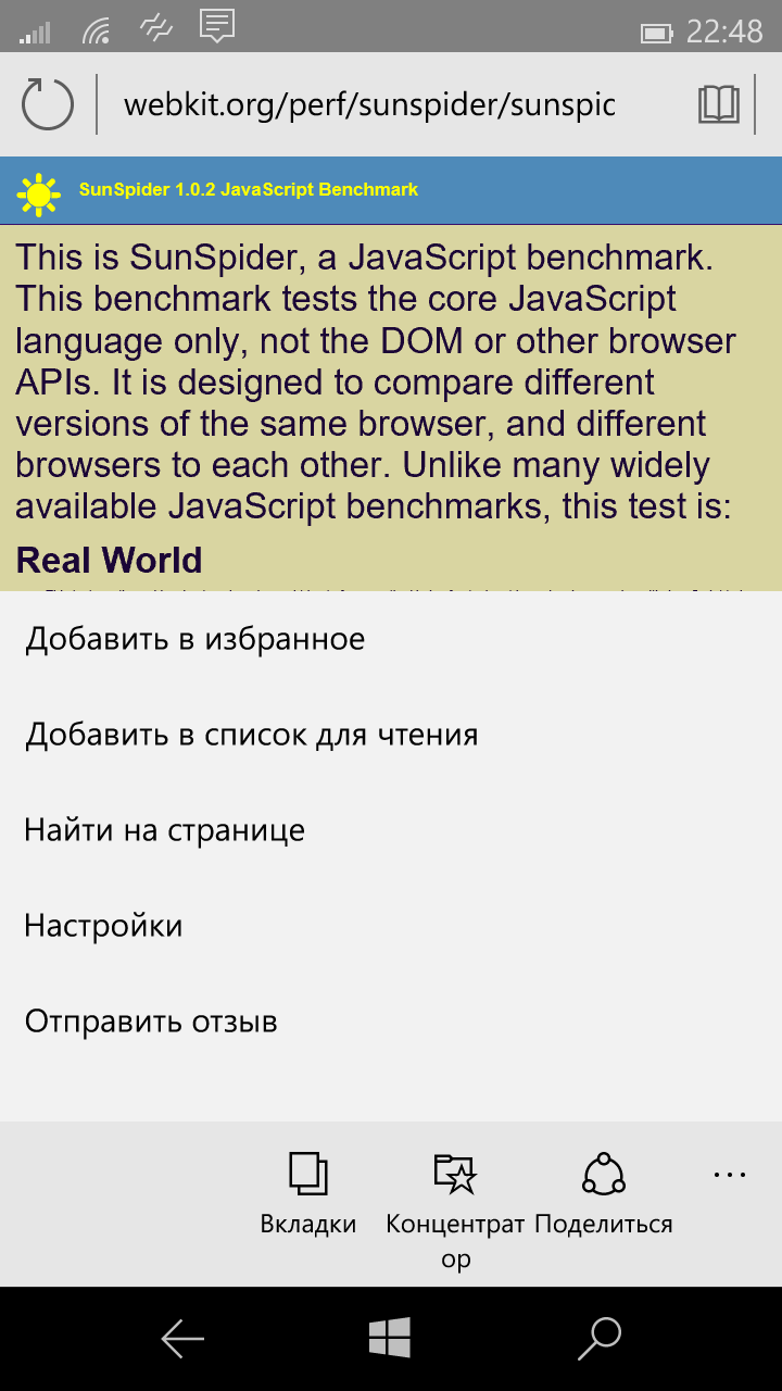 * Смартфон прошел тест в бенчмарке Octane 1.0