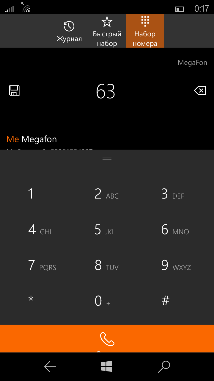 Серьезные изменения претерпело приложение для работы с телефонными вызовами, попросту «звонилка». Во-первых, окно набора номера (телефонная клавиатура) получило отдельную вкладку. Всего вкладок теперь три: Журнал, Быстрый набор, Набор номера. Быстро переключаться между ними горизонтальным взмахом пальца по экрану больше нельзя — возможно, эту функцию вернут в финальном релизе операционной системы. Без такого переключения перемещаться между вкладками очень неудобно, особенно если вы управляете смартфоном одной рукой, а у него большой дисплей — приходится тянуться пальцем к значкам, расположенным очень высоко на экране (в последней прошивке добавлена функция «сдвига» экрана вниз по двойному нажатию на кнопку «Пуск»). Второе нововведение относится к категории «все новое — это хорошо забытое старое»: быстрый поиск контакта в записной книжке. То, что было в старой Windows Mobile и что давно есть в конкурирующих мобильных ОС, снова появится в Windows 10 Mobile. Смысл функции очень прост: вы вводите первые символы имени или цифры телефонного номера на телефонной же клавиатуре, и программа предлагает вам подходящие контакты из адресной книжки смартфона.