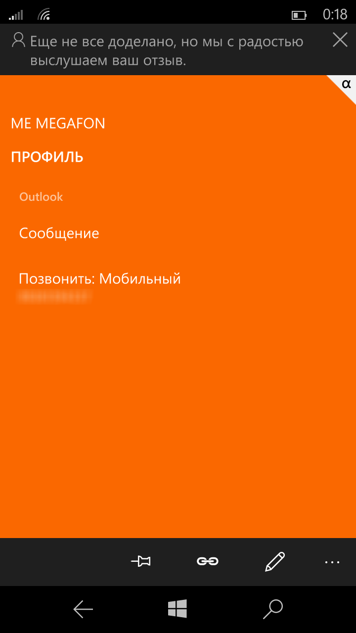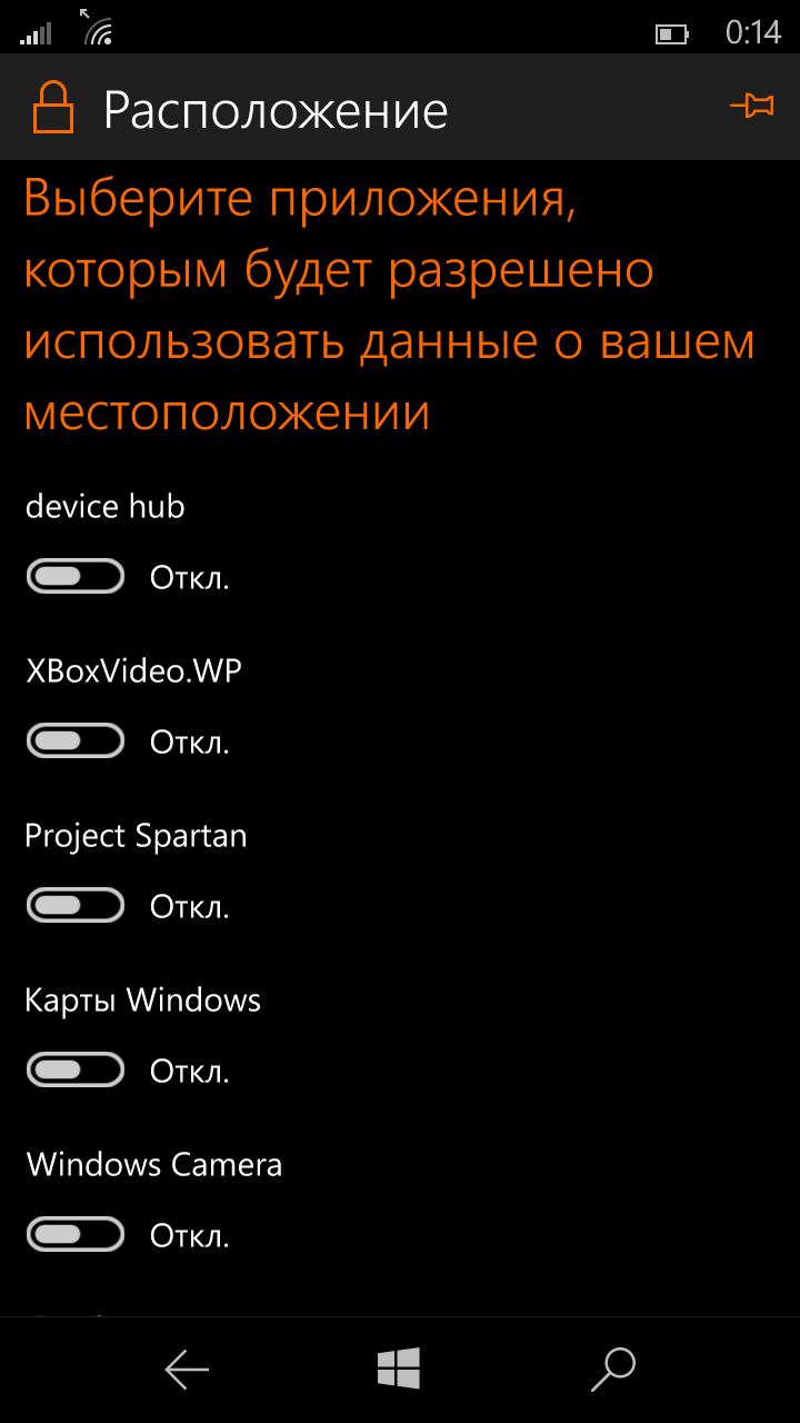 На примере меню настроек также хорошо видны проблемы с локализацией предварительной версии Windows 10 Mobile Preview. В большинстве мест в операционной системе и приложениях текст переведен на русский язык, но в свежих функциях и недоработанных компонентах встречаются слова и фразы на английском языке.