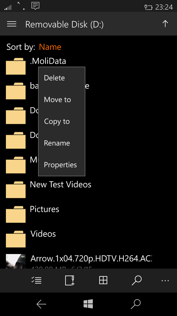 Список функций проводника включает все стандартные операции по манипуляции с файлами и каталогами: создание, копирование, вставка и так далее. Можно просматривать подробные свойства файлов и папок с дополнительными тегами и метаданными. Можно передавать файлы посредством вложений в почте, прикреплять к сообщениям в Facebook и MMS, посылать по NFC. Странно, но возможность отправки файлов напрямую по Bluetooth пока отсутствует.