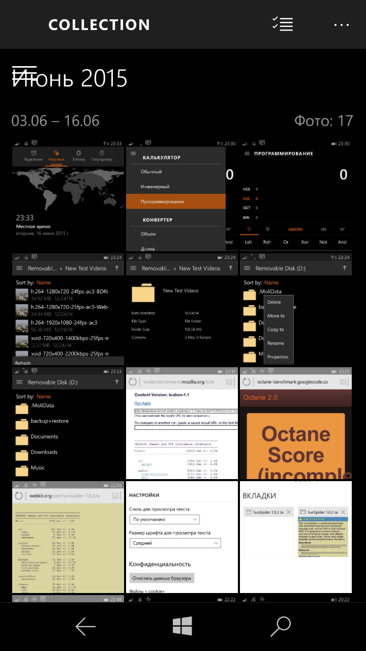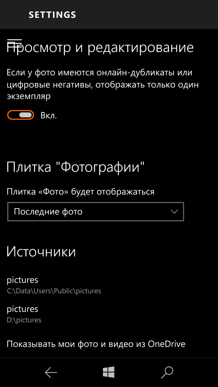 Работа с фото и видео невозможна без приложения-галереи. В новой прошивке у него изменился внешний вид и появилась встроенная синхронизация данных с облаком OneDrive.