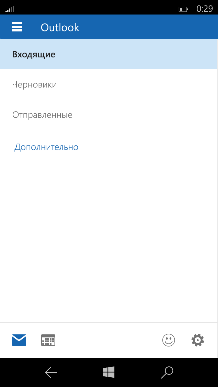 На смену почтовому клиенту Live пришло новое приложение Outlook Mail. Связанная с почтовиком программа-органайзер сохранила старое название «Календарь», но от предыдущей версии программы из Windows Phone 8.1 не осталось и следа. Оба новых приложения тесно связаны, между ними можно переключаться и осуществлять манипуляции с письмами и событиями, не выходя на основной экран системы.