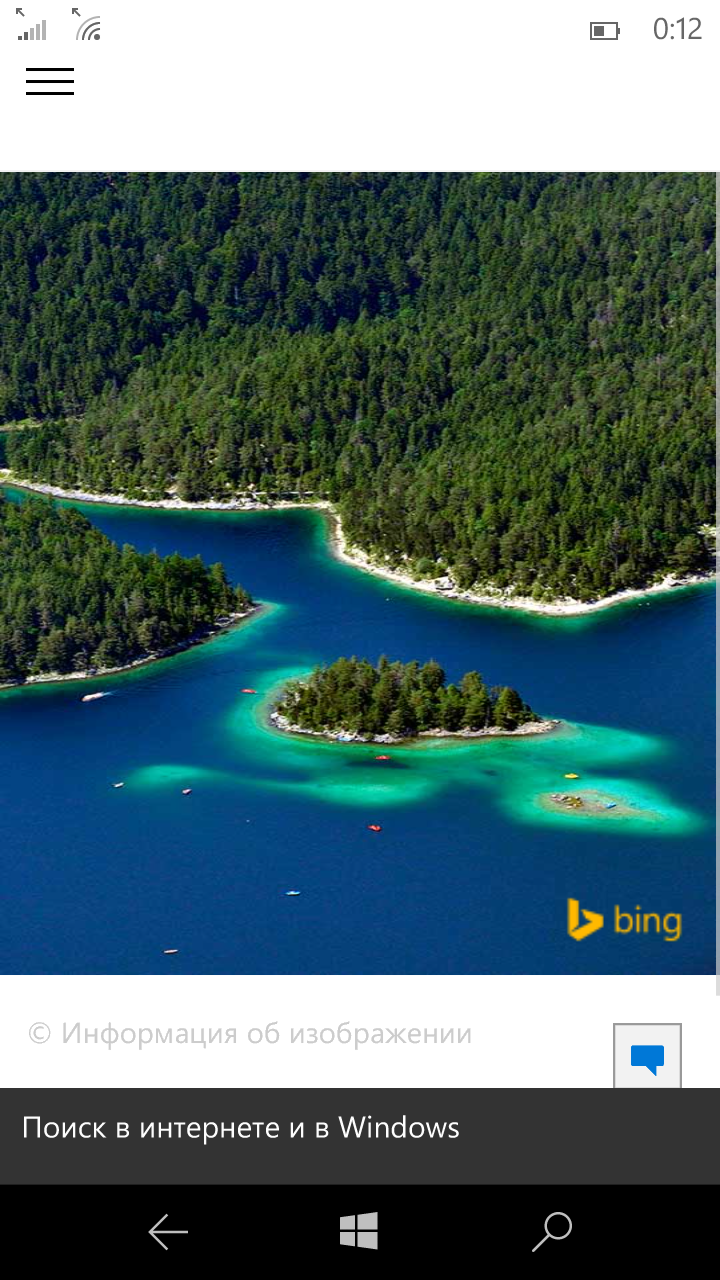 К слову о поисковиках. Как известно, в смартфонах Lumia, продаваемых в России, в качестве штатного поисковика установлено приложение Яндекс. Будет ли так делаться и в дальнейшем, неизвестно. В Windows 10 Mobile Preview при нажатии на кнопку поиска запускается голосовой помощник Cortana. Сервис недоступен в России, о чем тут же сообщается на экране приложения. Если затем нажать кнопку «Назад», то появляется указанный ранее поисковик Bing. В памяти смартфона также присутствует поисковик Яндекса, но как отдельное приложение.