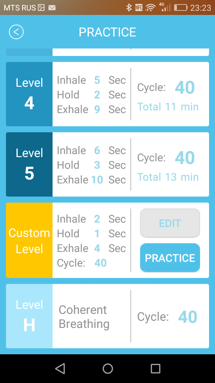 Браслет WMe 2 можно использовать в качестве часов: в настройках есть опция показа времени при характерном движении рукой. Еще из интересного — набор дыхательных упражнений. В меню это пункт Breathing Practice. В принципе, ничего особенного — такие упражнения есть во множестве мобильных приложений, но в случае с WMe 2 вы еще и можете видеть в процессе упражнения ваш пульс (для этого надо либо держать устройство в руках, либо разместить его на нагрудном поясе / футболке / топике).