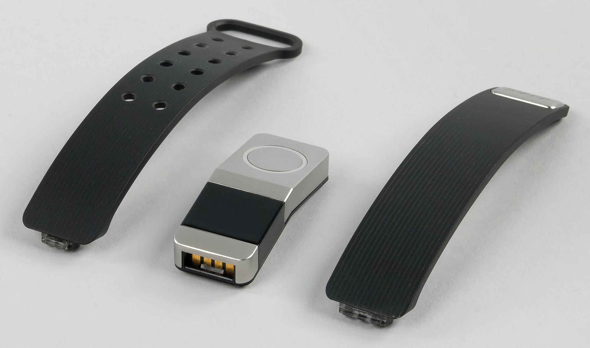 Заряжается устройство с помощью крэдла с прикрепленным шнуром USB. Крэдл вставляется с одной из сторон аналогично тому, как крепятся половинки ремешка.