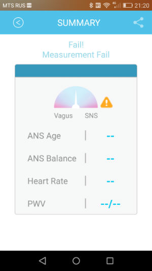 Покритикуем еще. Измерения далеко не всегда бывают удачные. Процент неудачных измерений (когда вы вроде бы держите устройство обеими руками, как надо, но на ЭКГ черт знает что, и в итоге мы видим сообщение Fail! Measurement Fail) слишком велик. В процессе тестирования это было не один и не два раза.