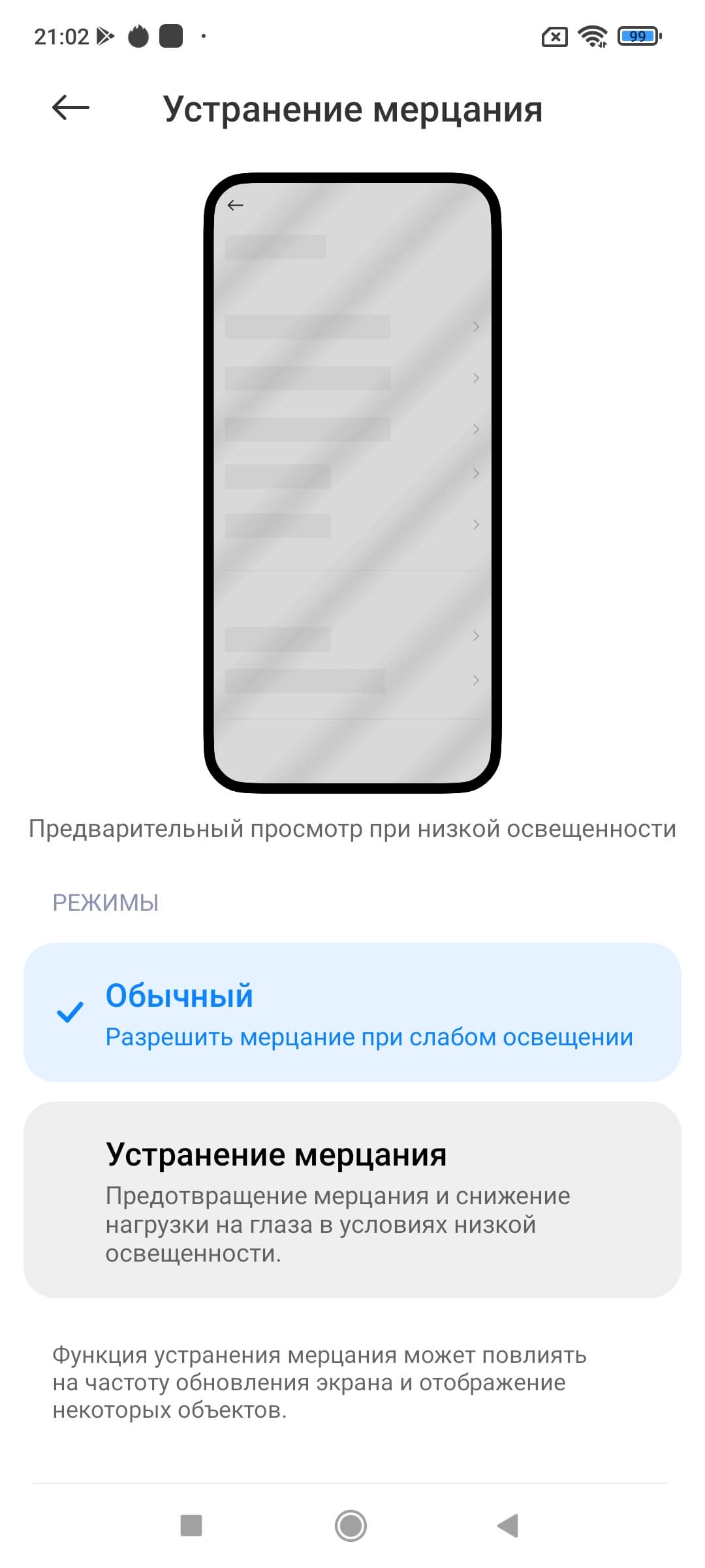 Те, кому кажется, что такое мерцание вызывает дискомфорт, могут попробовать включить функцию с названием Устранение мерцания.