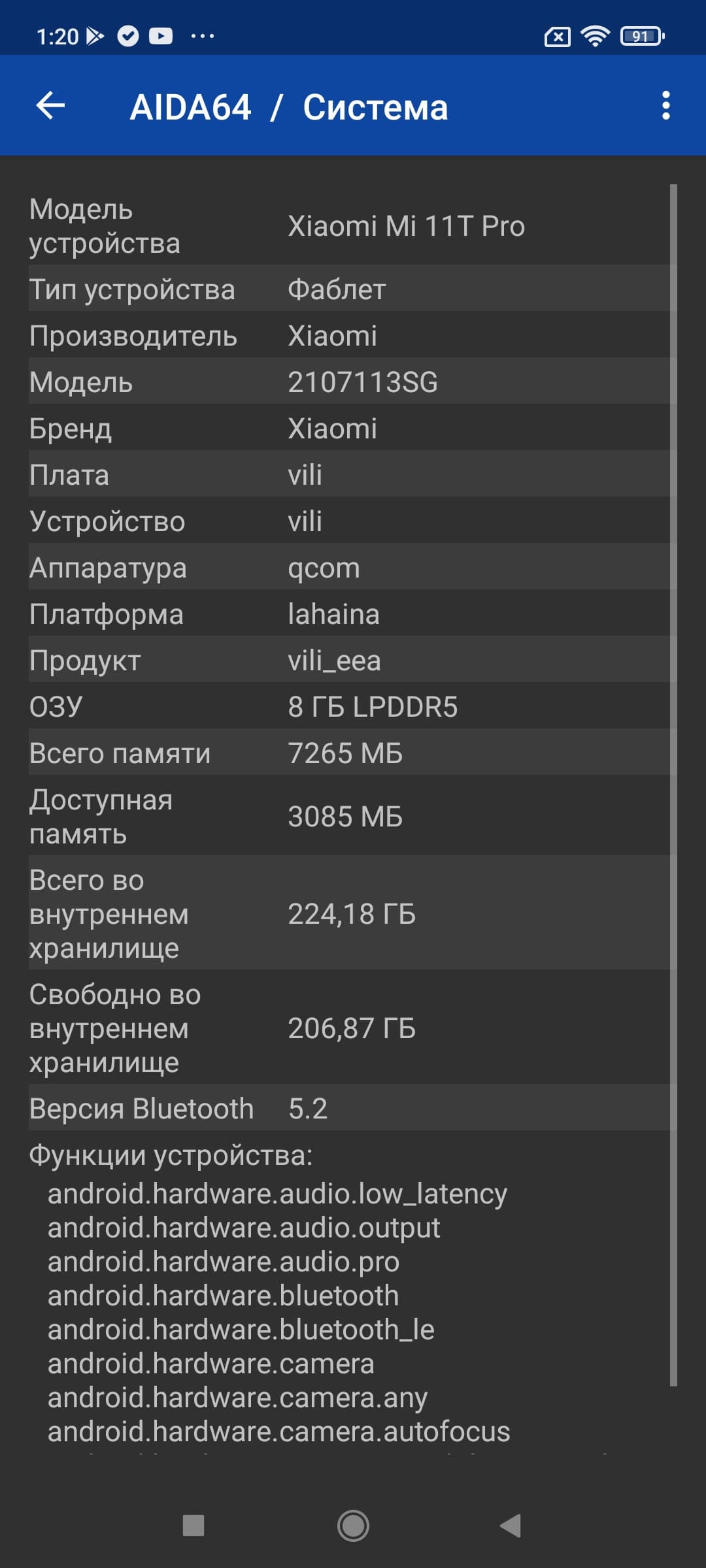 Основные характеристики Xiaomi 11T Pro (модель 2107113SG)