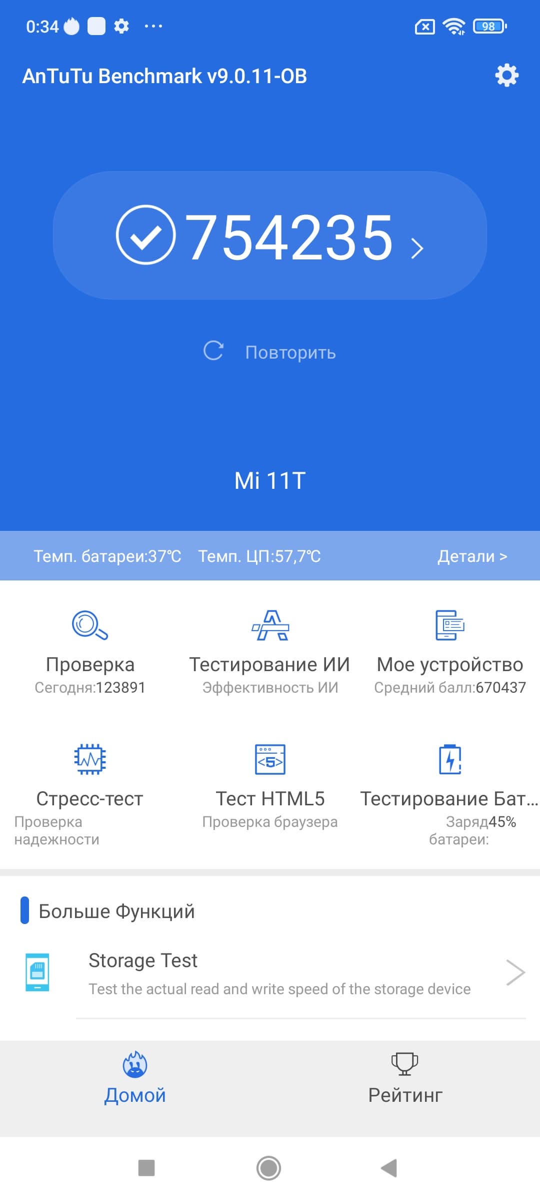 Тестирование в комплексных тестах AnTuTu и GeekBench: