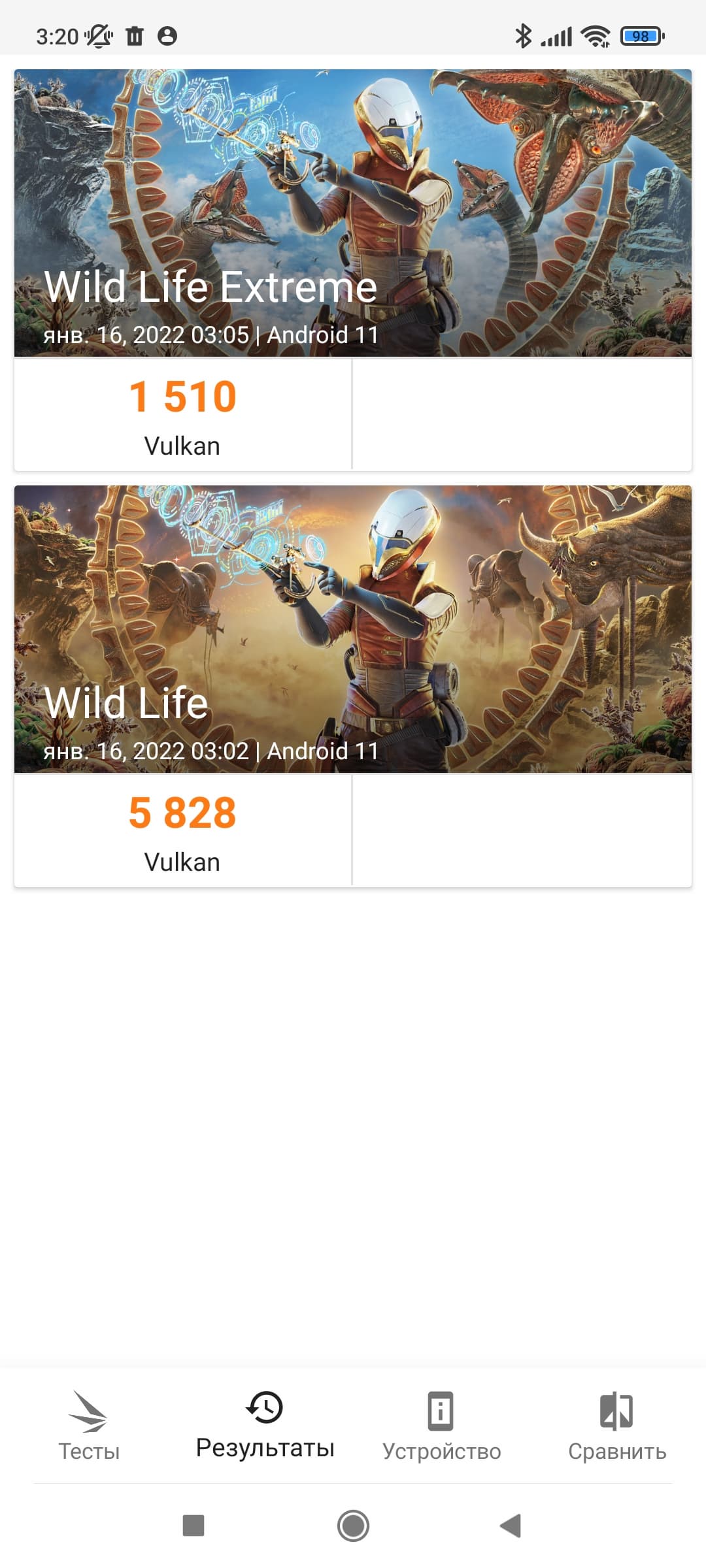 | 3DMark Wild Life Extreme Vulkan (больше — лучше) | 1510 | 1380 | |||