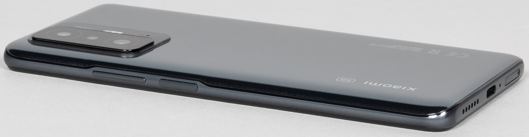 Xiaomi 11T Pro получил точно такой же обтекаемый дизайн с покатой задней спинкой, скругленными угловыми частями и округлыми боковинами, как и большинство смартфонов последних лет. До плоских граней с выраженными ребрами на стыке здесь дело пока не дошло. В темно-сером варианте у корпуса даже не матовая, а гладкая стеклянная задняя стенка, корпус маркий и скользкий, практичным его не назвать. У светло-синего варианта спинка хотя бы матовая и не такая маркая.