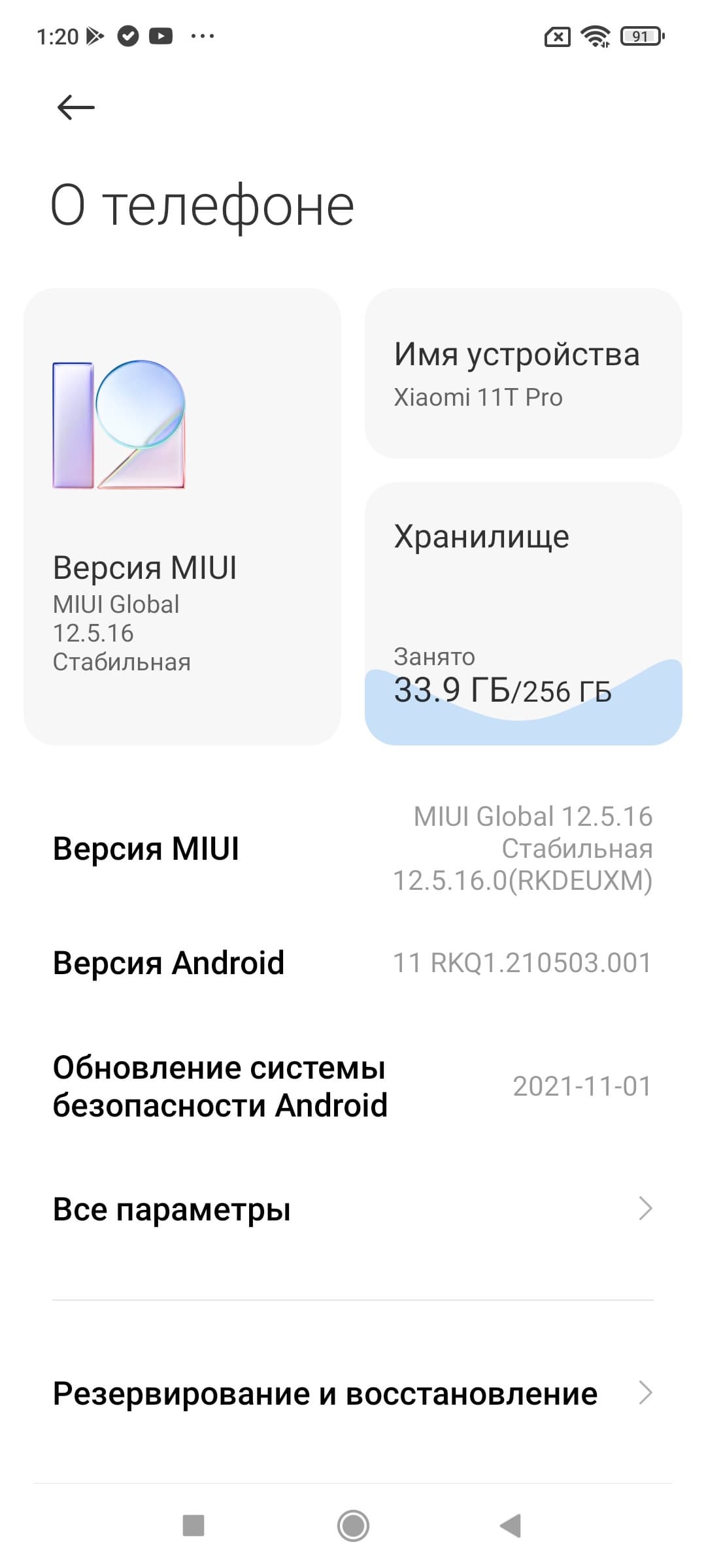 Xiaomi 11T Pro поставляется с ОС Android 11 и с фирменной оболочкой MIUI 12.5. К MIUI за последнее время накопилось немало претензий — как за хаотичность организации и тяжеловесность, так и за обилие навязчивой рекламы. Возможностей у интерфейса не больше, чем у смартфонов других марок, а вот сидеть и вычищать вручную придется изрядно. Навязчиво предлагаются и собственные сервисы: стоит только включить новый аппарат, как он начинает спамить всплывающими уведомлениями, предлагая очистить память и пр. Программный интерфейс MIUI смотрится не очень привлекательно на фоне добротного «железа», пора Xiaomi проводить серьезные реформы. Что ж, во всяком случае здесь есть официальный магазин приложений Google Play и сервисы Google.