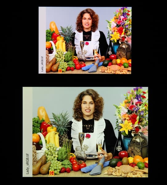 Отметим, что на экранах с широким цветовым охватом без соответствующей коррекции цвета обычных изображений, оптимизированных для устройств sRGB, выглядят неестественно насыщенными. Отсюда и рекомендация: в большинстве случаев смотреть кино, фотографии и все естественное лучше при выборе профиля Стандарт. Профиль Яркий уместен при просмотре материала с охватом DCI-P3, принятым в цифровом кинематографе, но в быту встречающимся редко.