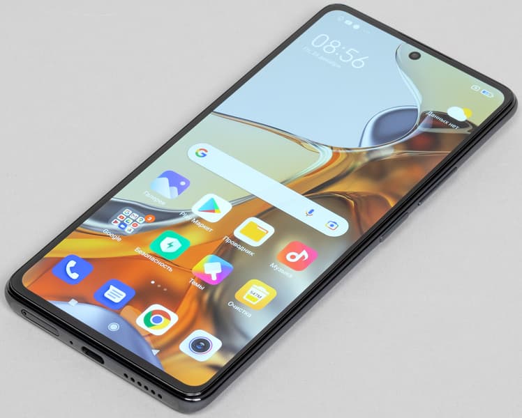 Вдобавок к своей обтекаемой неэргономичной форме и скользким поверхностям аппарат еще и максимально крупный и тяжелый: при меньшей площади дисплея он даже крупнее Mi 11. Но есть и положительное отличие: здесь у переднего стекла нет загнутых краев, поэтому нет ни паразитных бликов, ни ошибочных касаний. Экран с новейшим защитным стеклом Corning Gorilla Glass Victus — вообще одно из самых сильных мест данной модели.