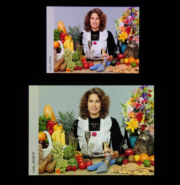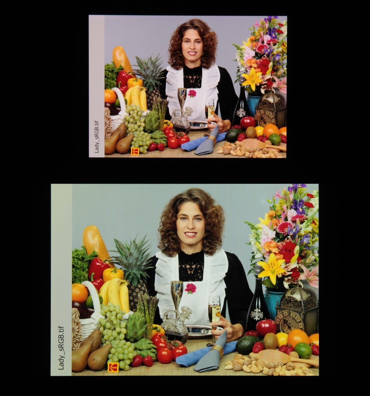 Отметим, что на экранах с широким цветовым охватом без соответствующей коррекции цвета обычных изображений, оптимизированных для устройств sRGB, выглядят неестественно насыщенными. Отсюда и рекомендация: в большинстве случаев смотреть кино, фотографии и все естественное лучше при выборе профиля Стандартные. Профиль Яркие уместен при просмотре материала с охватом DCI-P3, принятым в цифровом кинематографе, но в быту встречающимся редко.