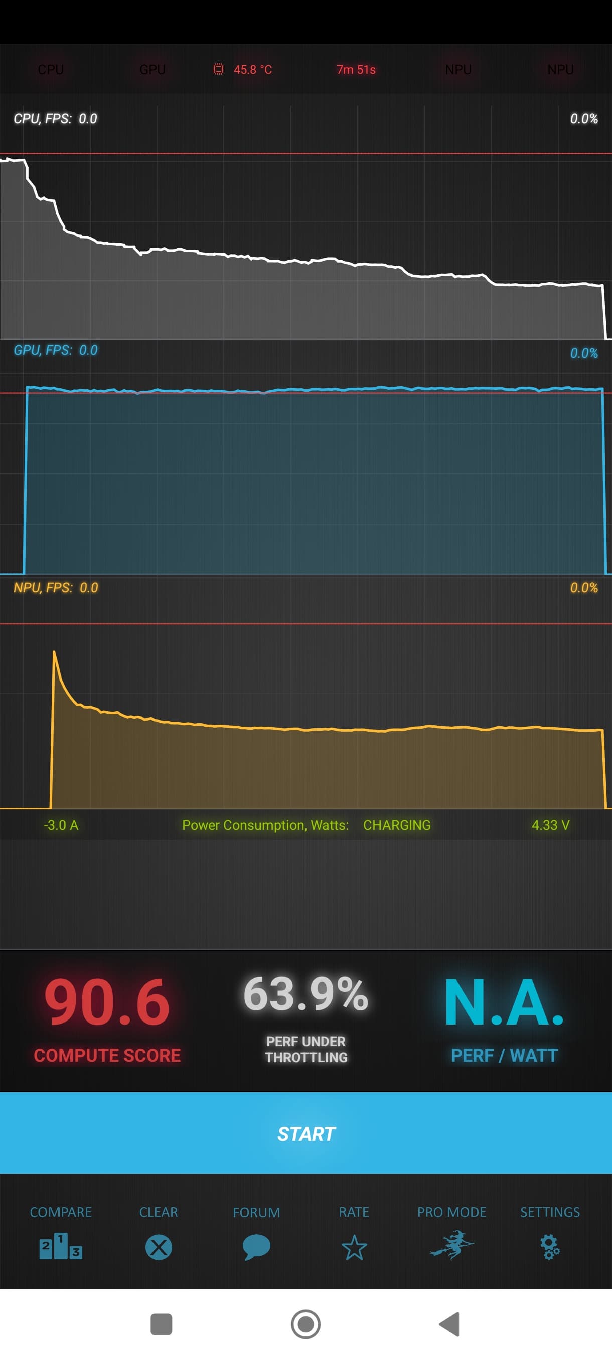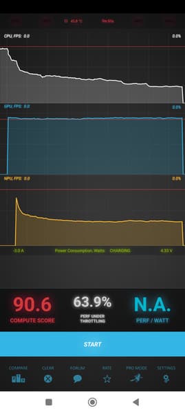 Тест на снижение производительности под нагрузкой мы проводим с помощью программы Burnout Benchmark, которая позволяет нагружать CPU, GPU и NPU: