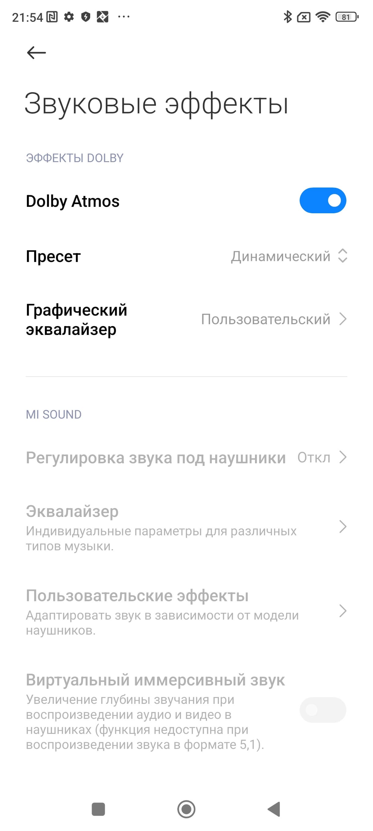 Динамики у смартфона работают в стереорежиме. Они звучат чисто, объемно и громко, с приятным на слух набором частот. В наушниках звук тоже достойный. Имеется сертификация Hi-Res Audio, поддержка кодеков AAC/LDAC/LHDC и набор настроек системы Dolby Atmos. Нет только выхода 3,5 мм для качественных проводных наушников.