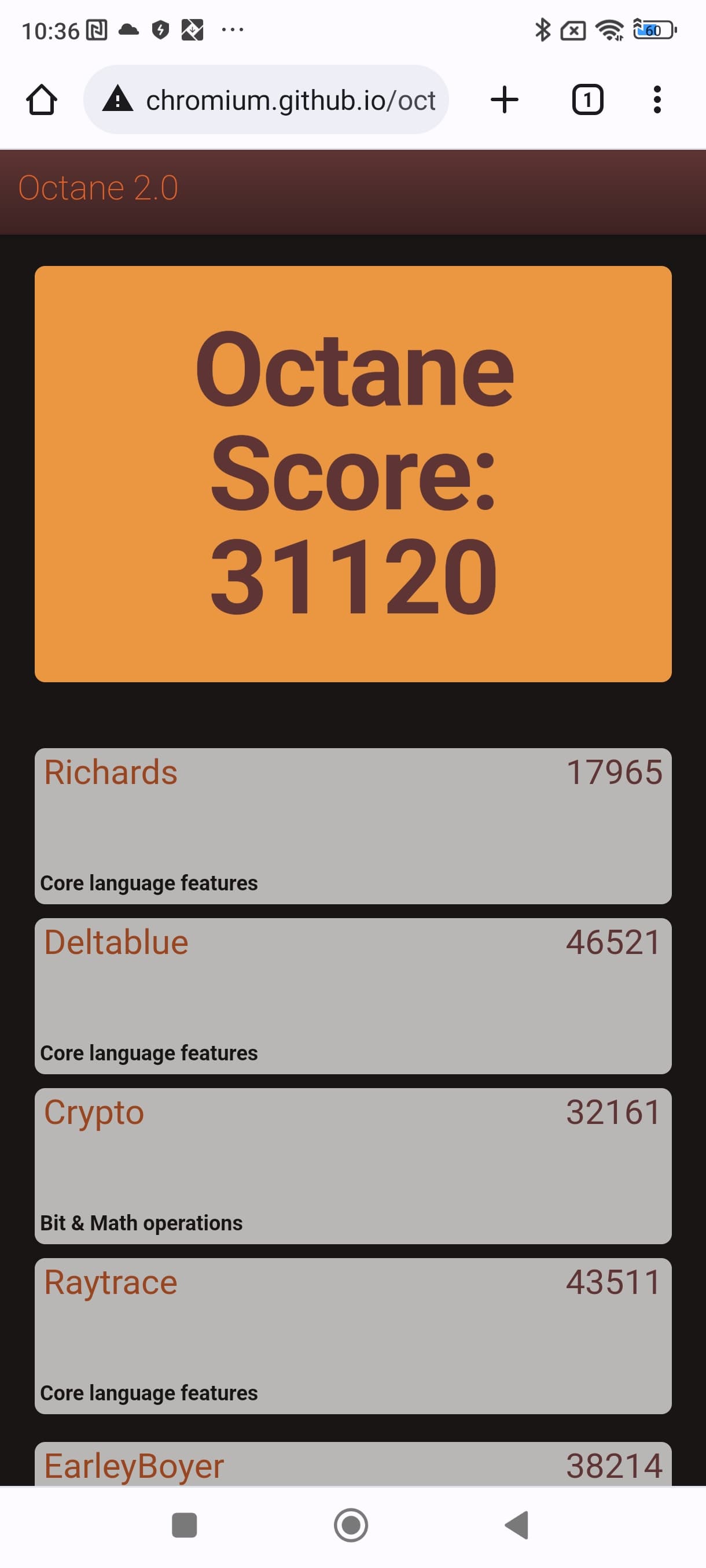 | Google Octane 2 (больше — лучше) | 31120 | 30849 | 36245 | 31919 | 7257 |