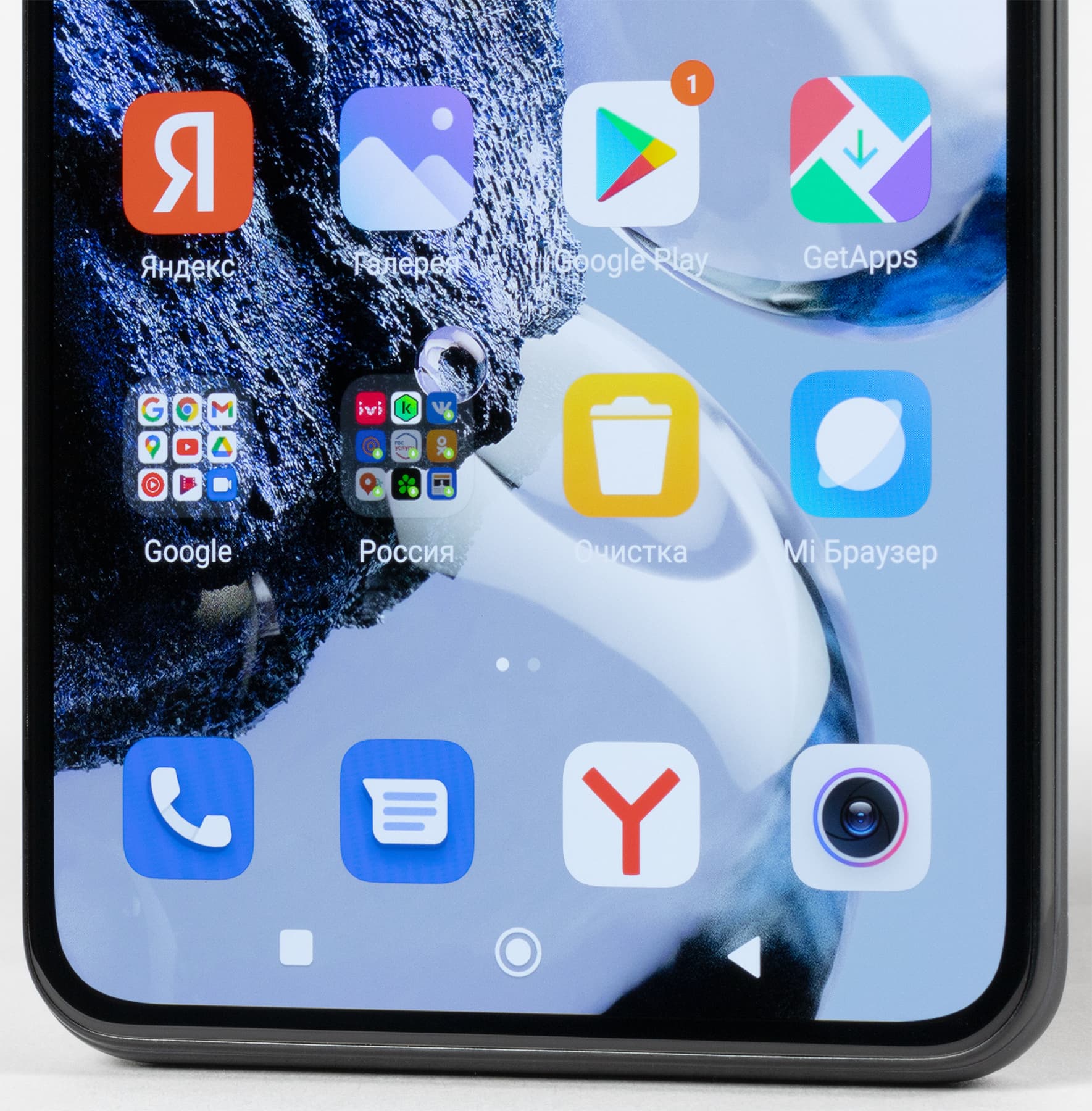 Но есть и положительные моменты: по крайней мере, переднее стекло не имеет загибов по бокам, а значит, нет ни бликов, ни ошибочных касаний. Экран защищен стеклом Corning Gorilla Glass 5. Это, как и в случае с пластмассовой рамкой, спорный момент, поскольку даже предыдущая модель Xiaomi 11T Pro была защищена более современным стеклом Gorilla Glass Victus.