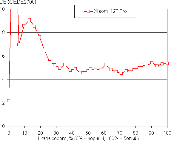 Напомним, что в случае OLED-экранов яркость фрагментов изображения динамично меняется в соответствии с характером выводимого изображения — немного уменьшается для светлых в целом изображений. В итоге полученная зависимость яркости от оттенка (гамма-кривая), скорее всего, не соответствует гамма-кривой статичного изображения, так как измерения проводились при последовательном выводе оттенков серого почти на весь экран.